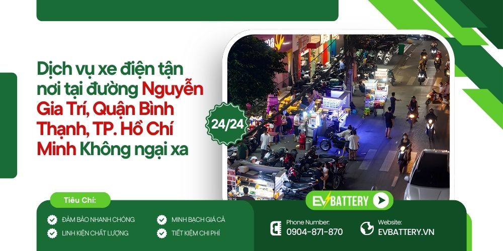 Dịch vụ xe điện tận nơi tại đường Nguyễn Gia Trí, Quận Bình Thạnh, Thành phố Hồ Chí Minh – Không ngại xa của EVBattery ra đời với mong muốn trở thành “người bạn đồng hành” đáng tin cậy cho mọi khách hàng đang sử dụng xe máy điện.