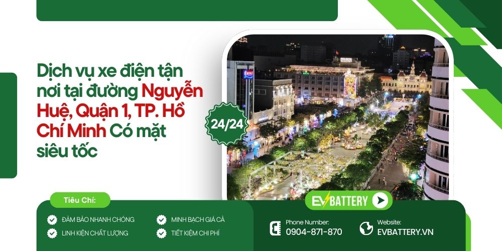 Dịch vụ xe điện tận nơi tại đường Nguyễn Huệ, Quận 1, Thành phố Hồ Chí Minh – Có mặt siêu tốc của EVBattery ra đời để giải quyết nhanh gọn mọi rắc rối mà người dùng xe máy điện thường gặp giữa khu vực trung tâm đông đúc, nhộn nhịp bậc nhất Sài Gòn.