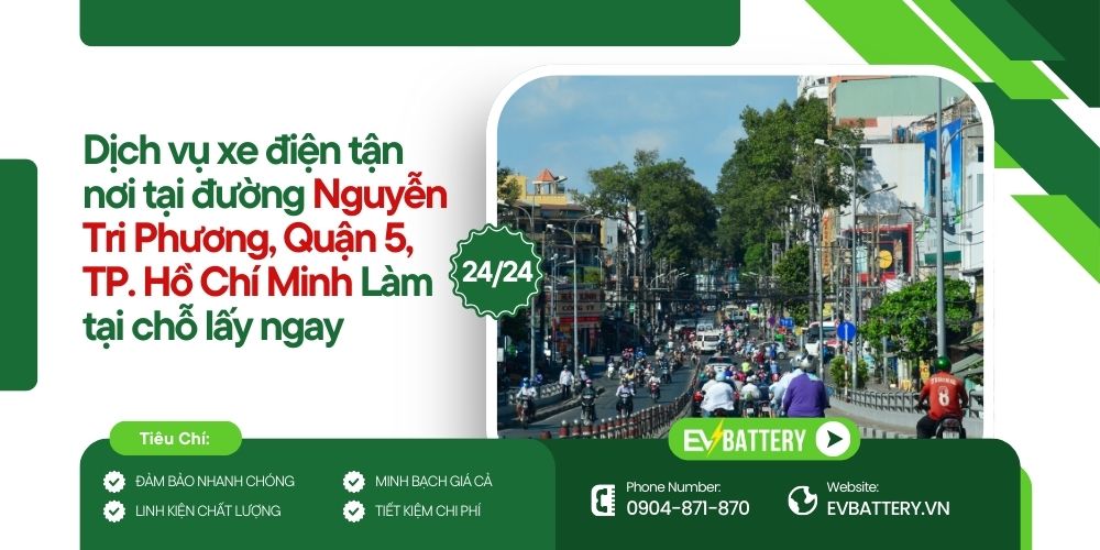 Cung đường sầm uất Nguyễn Tri Phương, Quận 5 và chẳng may chiếc xe máy điện thân yêu bỗng nhiên “dở chứng” hay gặp sự cố về pin giữa chừng, đừng quá lo lắng vì đã có dịch vụ cứu hộ xe điện tận nơi của EVBattery đồng hành cùng bạn.