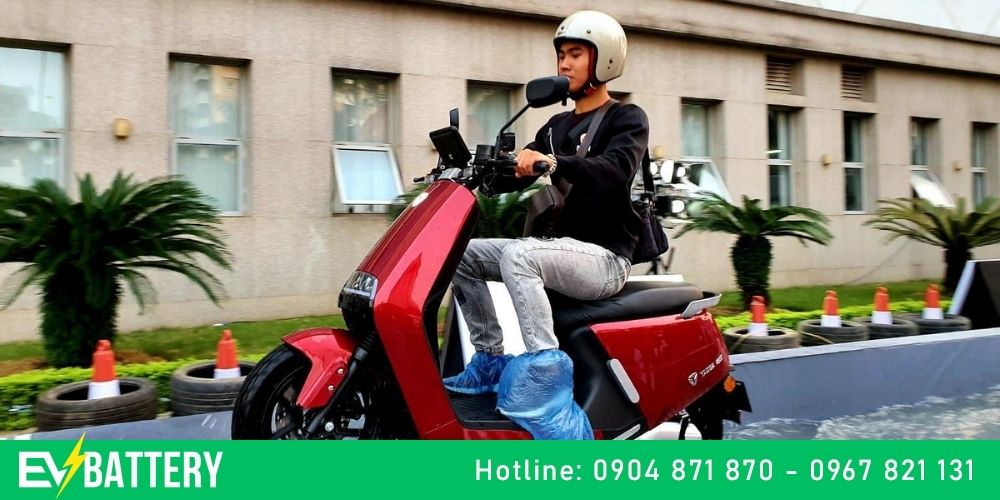 EVBattery sử dụng pin lithium‑ion cao cấp thay vì ắc quy truyền thống, nhờ đó xe trở nên nhẹ nhàng hơn, ga đều hơn và quan trọng nhất là hãy quên ngay cảm giác “đuối sức”, hụt pin giữa đường.