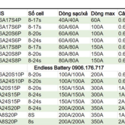 Mã BMS Số cell(s) Dòng sạc/xả Cân bằng