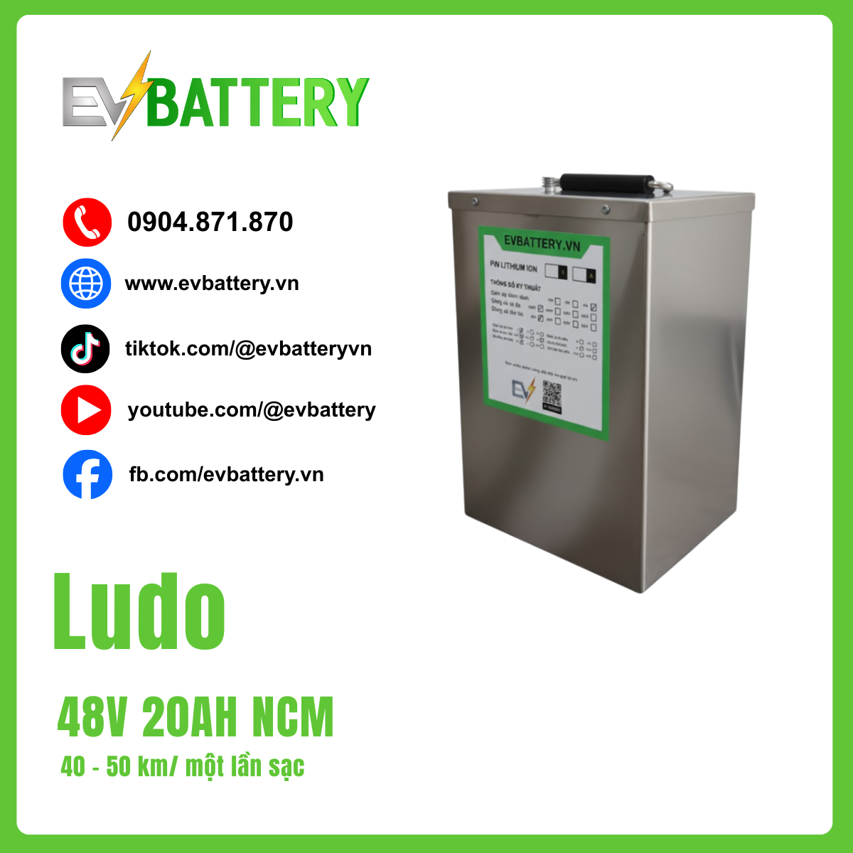 Pin Ludo 48V 20AH NCM  Giải pháp kinh tế dành cho dòng xe Ludo với khối pin Lithium Ion NCM 48V 20AH. Sản phẩm này mang lại quãng đường di chuyển ổn định từ 40 – 50km mỗi lần sạc.
