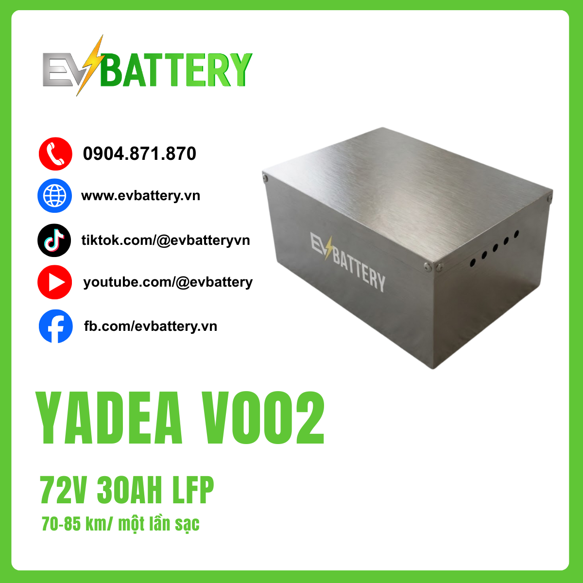 Bạn cần một giải pháp pin bền bỉ, an toàn với chi phí tiết kiệm nhất cho chiếc Yadea Voltguard V002? Với gói pin 72V 30AH LFP, bạn sẽ sở hữu công nghệ pin Lithium Sắt Phosphate siêu bền, di chuyển ổn định 70-85 km/lần sạc. Mức giá 7.500.000 VNĐ cực kỳ hợp lý cho nhu cầu đi lại cơ bản trong nội thành.
