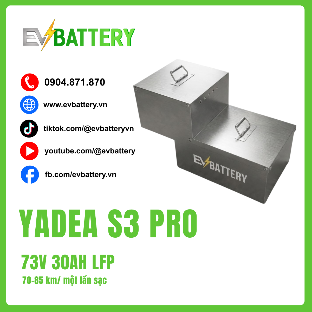 Giải pháp kinh tế cho Yadea S3 Pro: Pin 73V 30AH LFP. Giá 7.500.000 VNĐ, đi được 70-85 km. Thay thế hoàn hảo cho bình ắc quy zin, giúp xe nhẹ hơn và bền hơn gấp nhiều lần.
