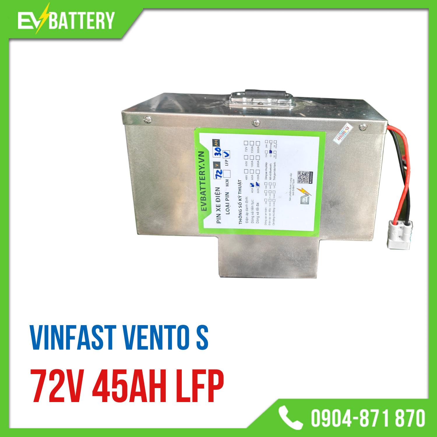 Giải pháp nâng cấp pin song song 72V 45Ah công nghệ LFP dành cho VinFast Vento S giúp tăng cường dung lượng tổng thể và mở rộng quãng đường di chuyển một cách ấn tượng, mang lại sự an tâm tuyệt đối nhờ độ bền cao và khả năng vận hành an toàn, ổn định cùng hệ thống điện của xe.