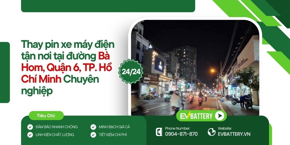 Hiểu rõ điều này, EVBattery mang đến dịch vụ thay pin xe máy điện tận nơi tại đường Bà Hom với phong cách chuyên nghiệp, nhanh gọn và cực kỳ linh hoạt, sẵn sàng xuất hiện đúng lúc bạn cần.