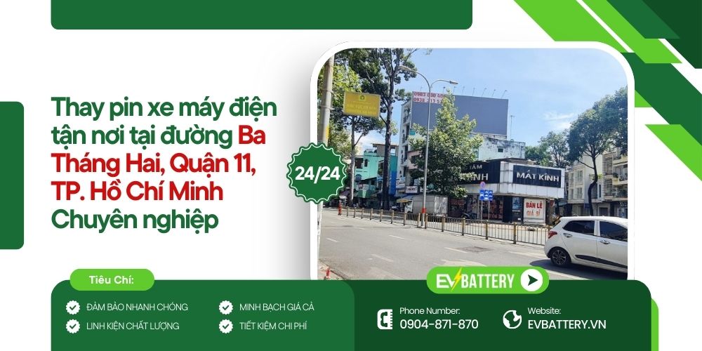 EVBattery tự hào là cửa hàng chuyên thay pin xe máy điện tận nơi tại đường Ba Tháng Hai, Quận 11 với phong cách làm việc chuyên nghiệp, nhanh gọn và thực tế.