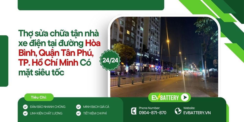 Hiểu được những nhu cầu cấp bách này, EVBattery tự hào mang đến dịch vụ sửa chữa tận nhà chuyên nghiệp, có mặt siêu tốc tại đường Hòa Bình và các tuyến lân cận.