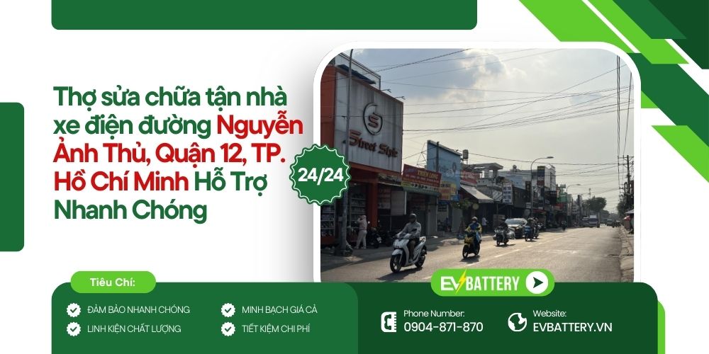 Dịch vụ thợ sửa chữa tận nhà xe điện tại đường Nguyễn Ảnh Thủ, Quận 12, Thành phố Hồ Chí Minh – Hỗ Trợ Nhanh Chóng của EVBattery ra đời nhằm mang đến giải pháp tiện lợi, kịp thời cho người dùng xe máy điện trong khu vực.