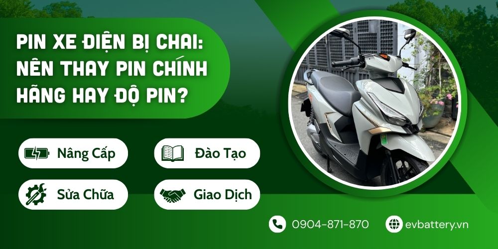 Khi pin xe máy điện bắt đầu xuống cấp, quãng đường di chuyển ngắn lại và việc sạc pin trở nên thường xuyên hơn, nhiều người dùng đứng trước một lựa chọn không hề dễ dàng đó là tiếp tục sử dụng pin nguyên bản và trông chờ vào bảo hành hãng, hay chấp nhận…