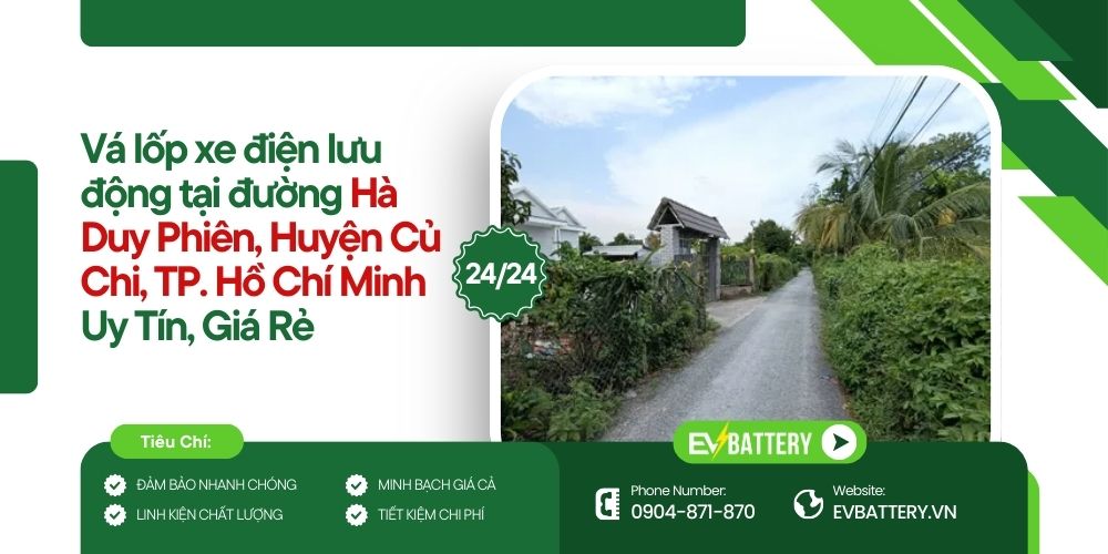 Hiểu rõ thực tế đó, EVBattery triển khai dịch vụ vá lốp xe điện lưu động tại đường Hà Duy Phiên, Huyện Củ Chi với tiêu chí uy tín – giá rẻ – có mặt nhanh.